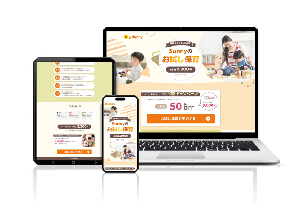 ビジュアルだけでもどんなサービスかが分かるように保育の様子も随所に写真を設置している。